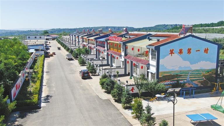 宜川县云岩镇辛户村民居。 当越来越多人享受手机收付款的便捷时,宜川县云岩镇辛户村家家户户却统一通过银行办理业务。 为什么呀? “因为大家的‘苹果生意’越做越大,手机收付款已满足不了要求了。”村党支部书记张延刚笑着说。 2020年,辛户村苹果收入创历史新高:全村102户,每户收入从十几万元到五六十万元不等。 从种不种苹果,到要不要剪枝、要不要砍树,在群众的质疑声中,张延刚一路精准决策,带领群众科学种植,让原本每亩收入不足200元的土地身价倍增。 10月16日,辛户村1700亩挂果果园进入采摘季。果园里,村民忙着采摘,客商络绎不绝,车辆往来穿梭,一派繁忙景象。 张延刚算了一笔账:今年全村300万公斤商品果,销售额2000多万元,村民纯收入达1500万元以上。 今年,辛户村人均收入预计达5万元。