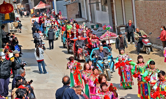 文化艺术网-文化艺术报讯(通讯员 李世居 赵正本)3月9日,“中国传统村落”陕西渭南市大荔县羌白镇阿寿村热闹非凡,花苫鼓开道,跑骡车护驾,各种造型的上百组花馍从四社八堡涌向村子中央的药王庙,“赛花馍”吸引来省内外上万游客慕名一睹风采。
