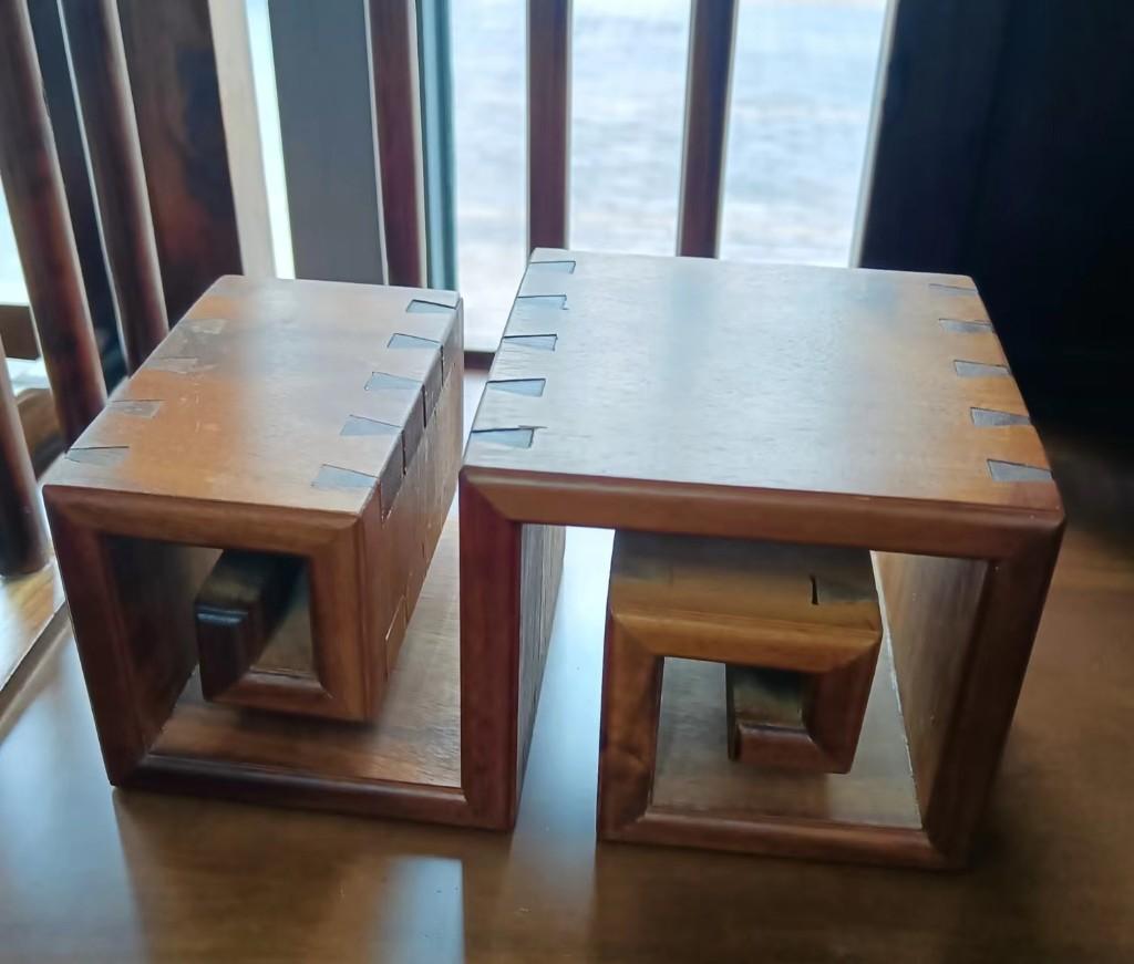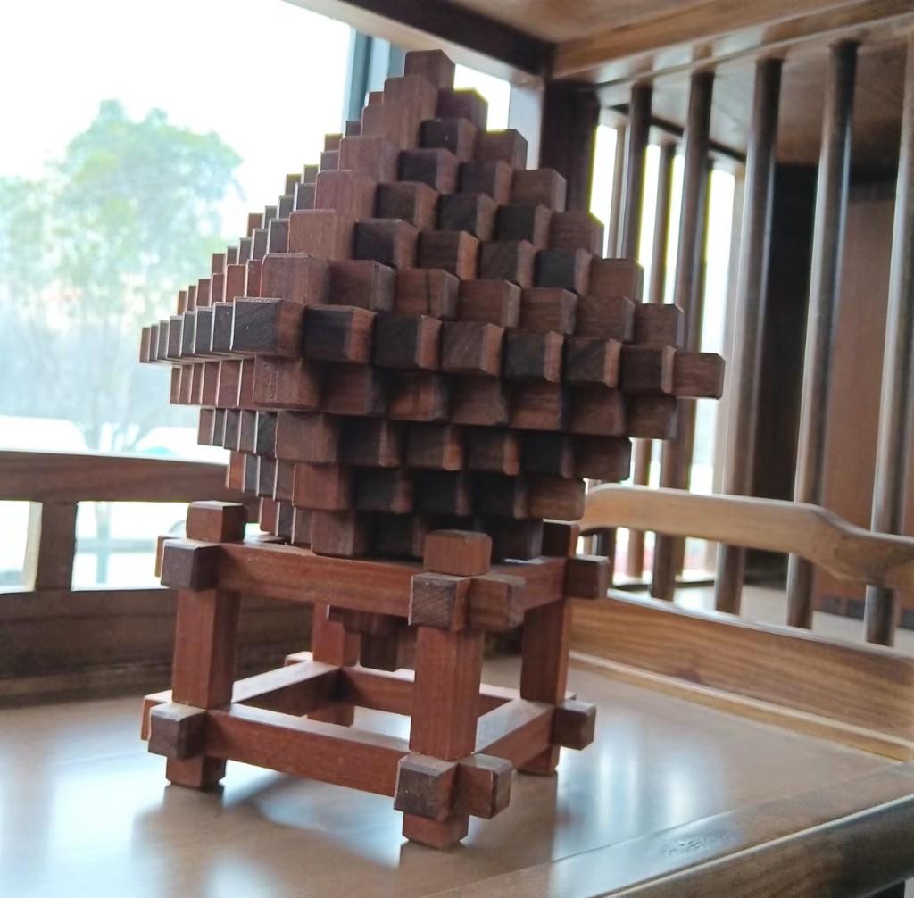 文/李卫 吴彦峰 成功复制故宫内嵌八方可旋转的方角药柜,并有所创新;解密鲁班锁;宣传、培训竹编、木工榫卯等传统技艺,开发木工文创产品,丰富旅游市场……今年36岁的手工木工技师戴朝禧,凭着对木工艺术的执念和精湛的技艺,在曲尺榫卯之间,活化、弘扬古老的中国非遗文化,书写着自己的别样人生。 5月30日,走进陕西汉中市佛坪县曲尺坊木工学堂,戴朝禧正忙着制作顾客订购的99条榫卯的鲁班锁。木架上,掌心大小的板凳、玉玺架、手机架,层层嵌套的鲁班锁、密码盒、梳妆盒、食盒、礼品盒、镂空门窗,以及木桌、木柜……全都不用一颗钉子,浑然天成、古典雅致。
