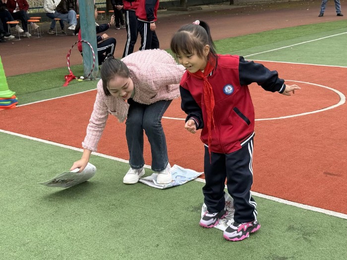 运动场上,彩旗迎风飘扬,全体师生、家长以饱满的热情和昂扬的斗志投入到各项趣味比赛中。“赶小猪”“布袋跳接力”“ 摸石头过河”“袋鼠夹球跳”“蚂蚁运球”“运球接力”“贪吃蛇”“搭桥过河”“割麦子”等团体互动项目如火如荼地开展,现场十分热烈,精彩连连,扣人心弦,一个个妙趣横生的精彩瞬间深深吸引了全体师生及家长,欢呼声、喝彩声此起彼伏,一浪高过一浪,大家体验到了无比的开心和欢乐。