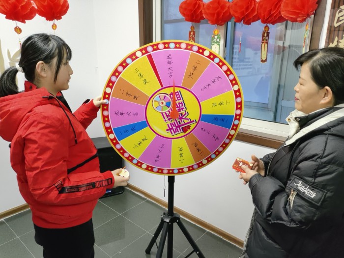 喜庆鲜艳的灯笼高高挂起,居民们纷纷聚集在灯笼下,或三五成群,或两两结伴,争相猜测着灯谜的答案。每一个灯谜背后都蕴含着丰富的文化内涵和巧妙的谜题设计,让人在思考中感受到传统文化的魅力。有趣的灯谜不仅考验着人们的智慧,更增进了邻里间的情谊。现场根据居民朋友们猜出的灯谜的数量,兑换了幸运大转盘抽奖机会,为大家带来了无限的惊喜与欢乐。