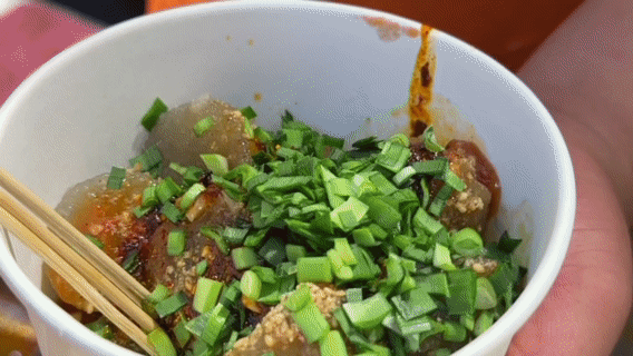 小吃“黑愣愣”。人民网记者 白鸽 摄 荤素百味到一粥一饭 大碗装菜、大口吃肉 在这广袤厚重的土地上 在热气腾腾的烟火气中 细微处瞥见榆林人的大气与精细 来了不知道吃甚? 热情好客的榆林人敢说 “包你吃好~” 串美,“拍拍拍”根本赏不过来! 吃美吃饱 还想玩到尽兴? 那就与朋友结伴 奔赴山海之约 让自由的灵魂找到肆意释放的归处 红砂岩波澜起伏 雄伟如通天石壁 仿若置身“火星”之境