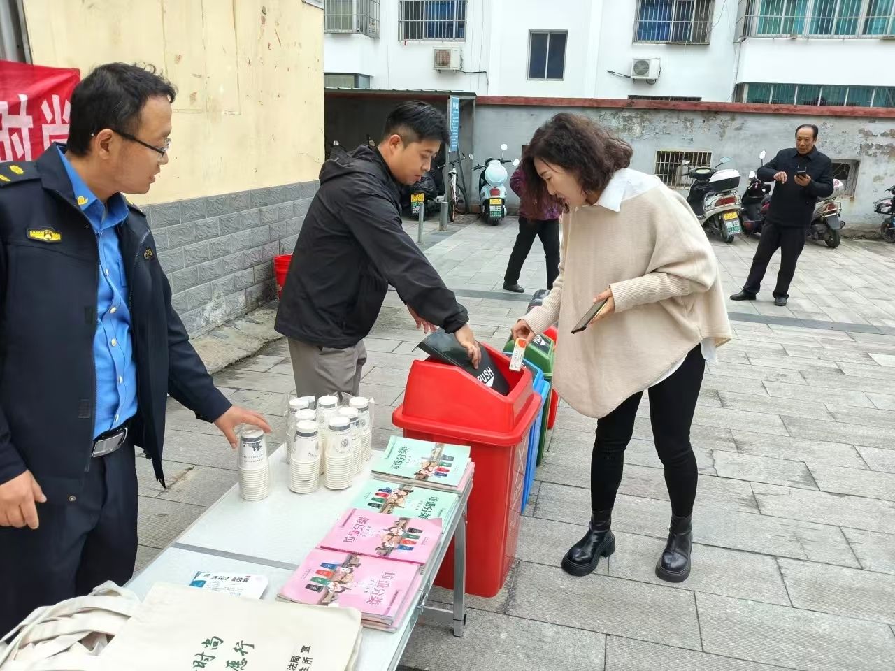 在小区和街镇活动中,由县住建局、县城管局、县环卫所及物业服务中心联合组织开展的“垃圾分类宣传进社区”活动,通过设置宣传展板、发放宣传资料,以及置换小礼品等形式,使小区居民们对垃圾分类有了更深入的了解。同时,工作人员还积极向市民介绍附近新增设的有害垃圾长期置换点,助力市民养成定点投放有害垃圾的习惯,实现有害垃圾在源头上的精准收集和高效处置。