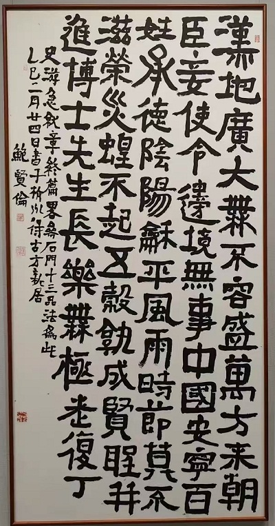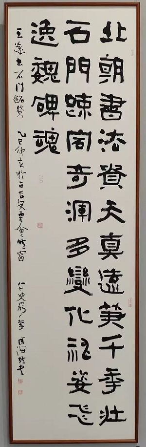 观看这个书法展览,行走在拜将坛周边景区,我生发感慨:汉中的石门摩崖石刻,记录了汉朝的壮举和精神,还有文化源流和风采。汉魏书风研创作品在此地展出,真是天作之合、因缘无限。