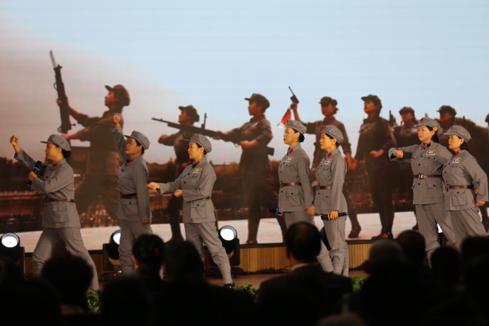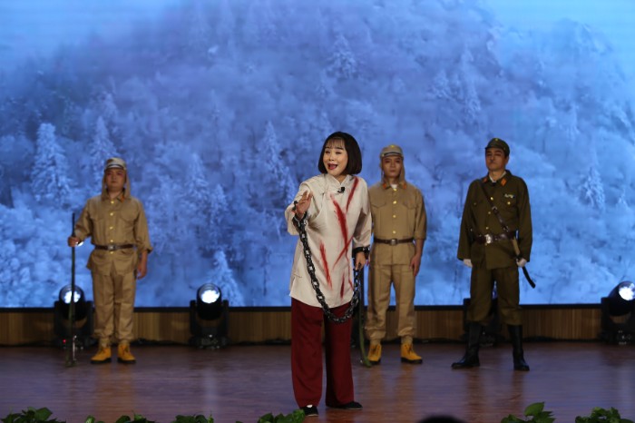 演出中,华阴老腔《将令一声震山川》《关中古歌》,葫芦丝合奏《芦笙恋歌》,朗诵《八女投江》,华阴迷胡《五更鸟》,华山戏法《三仙归洞》,舞蹈《书简舞》,迷胡情景剧《红枪白马赵一曼》,旗袍舞韵《为你等待》,太极剑表演《32 式太极剑》,合唱《梦中的兰花花》,独唱《大展宏图》等节目轮番上演。