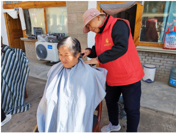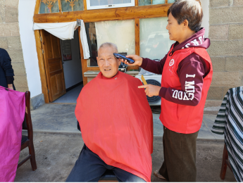 同时,县残联的志愿者们开展了“爱心义剪”志愿服务活动,免费为村里的老年人理发。志愿者一边为村里的老年人细致修剪头发,一边耐心倾听他们的心声,娴熟的手艺和贴心的服务赢得了老人们的连连称赞。“足不出村就能理发,还收到了月饼,真是太暖心了!”一位老人拿着刚领到的月饼,笑着说道。