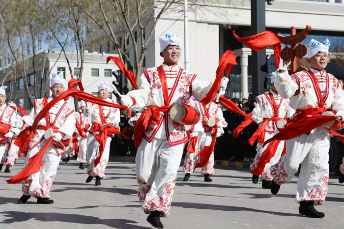 目前,全区超1.2万名学生利用体育课、课间操时间接受腰鼓培训,300余名校园骨干崭露头角,非遗传承“青春方阵”加速成型。青少年将以击鼓腾跃之势,把深植于黄土高原的集体记忆转化为新时代的文化自信,在鼓点中感受力量之美,在队列变化中体会协作之魂,建立起对本土文化的认同。