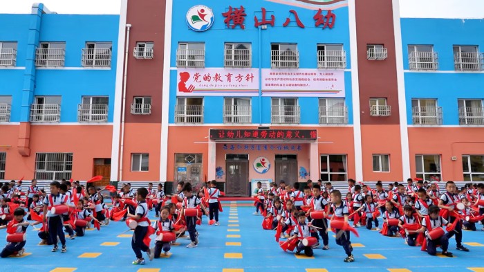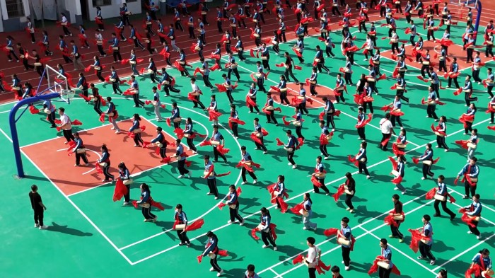 为了全面展示半年来的课间操训练成果,近日,榆林市横山区十余所中小学的5000余名学生,正利用课余时间紧张排练。他们红绸翻飞、鼓槌起落,每一个动作都凝聚着汗水与专注,是横山区将国家级非遗“横山老腰鼓”深度融入教育体系的成果展现。这不仅是对传统艺术规模的突破,更是文化基因在新一代心中扎根的实践。