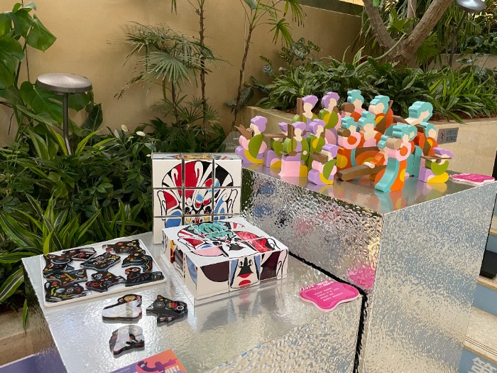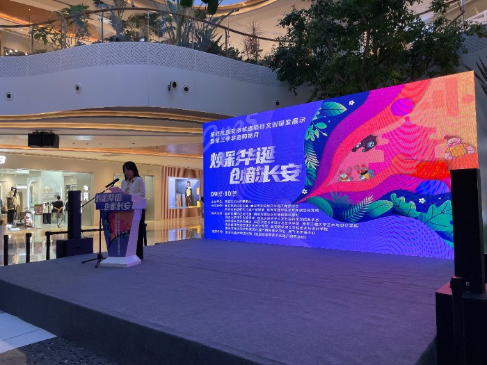 展览的核心展示区设于商场一楼绿植走廊,独特的场景布置让非遗作品与自然绿意相得益彰。本次展品品类多元,汇集了八所院校师生设计团队围绕西安非遗项目创新研发的文创成果。从复刻古老造纸术肌理的笔记本,到融入皮影元素的现代装饰画;从还原兵马俑细节的文创手办,到赋予唐三彩新釉色的家居摆件,每一件作品都在现代设计赋能下,既留存了非遗技艺的千年底蕴与文化肌理,又精准匹配当下生活场景的审美需求与实用功能,让民俗文化在现代社会中绽放出可触、可感、可用的鲜活生命力。