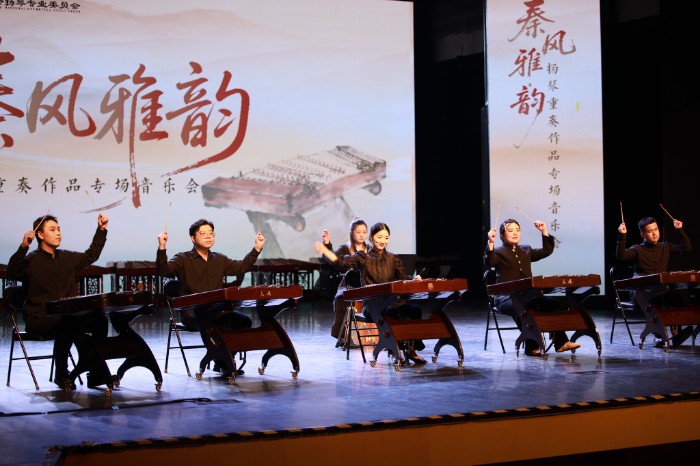 文化艺术网-文化艺术报讯(全媒体记者 宋光)金秋送爽,桂子飘香。值此举国共迎国庆佳节之际,9月30日晚,“秦风雅韵”扬琴重奏作品专场音乐会在西安音乐学院艺术中心歌剧舞剧厅上演。本次音乐会由西安音乐学院民乐系、陕西省民族管弦乐学会联合主办,西安音乐学院民乐系合奏教研室、弹拨乐教研室以及陕西省民族管弦乐学会扬琴专业委员会共同承办,以民族之乐庆祝中华人民共和国成立76周年。