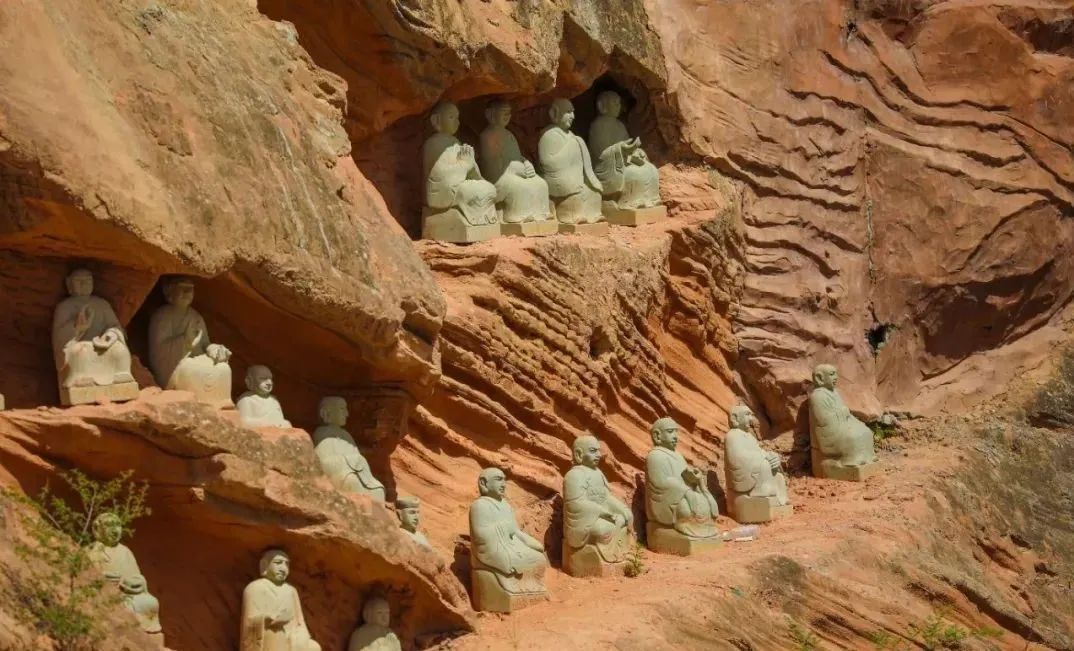 清凉石窟,依山傍水,上有天然焰焰峭壁,斜飞闪闪如生,下有百丈龙眼,宏伟壮观。山下有绿色的龙眼清泉绕石窟而流,山上有千仞峭壁天然凹进形成石壳,各庙宇内凿石窑洞,外建砖木。石窟内卧藏神窟、塑像,另有书法刻于崖壁,竭力诉说着历史的神秘与厚重。
