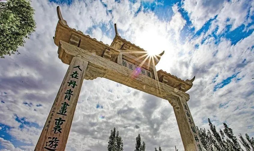 塞上森林小镇位于定边县城东北10公里处,金沙碧水、凉亭美景、绿荫匝地、亭亭如盖。漂浮的云团与摇曳的光影相互交织,在这里,人们可以尽情诵读生活和远方的诗,感受云海汇聚、朝晖斜映,感受光阴静默生机盎然的人间,去追寻那些散落在山野里的慢记忆。