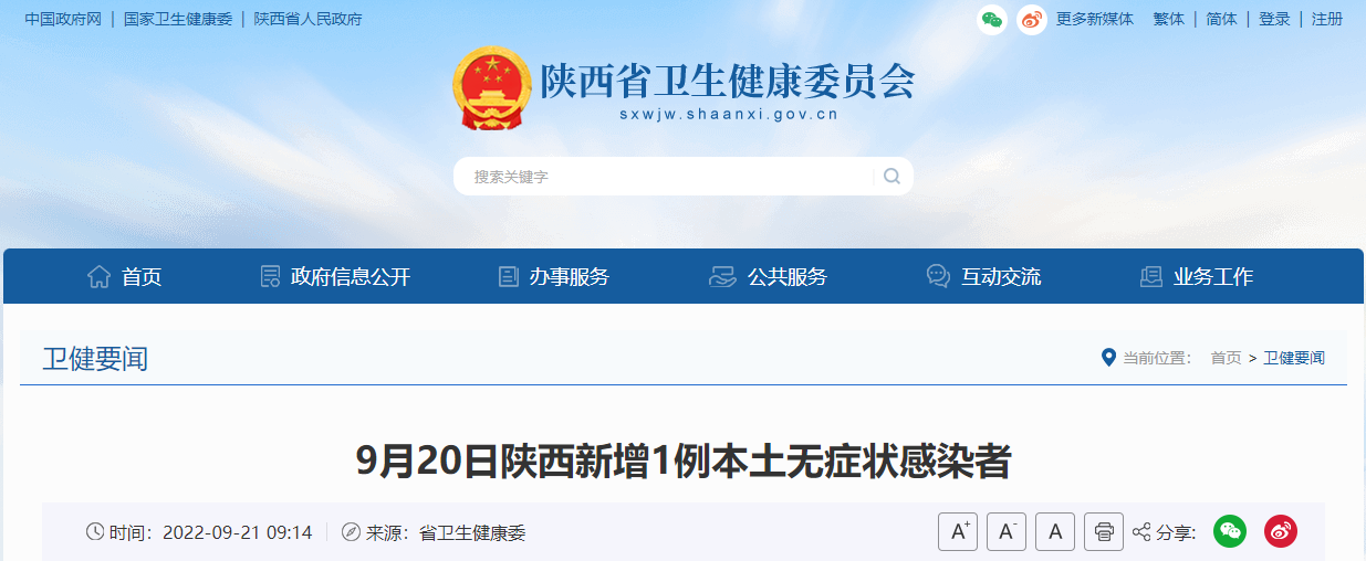 9月20日陕西新增1例本土无症状感染者 来源:群众新闻 作者: 时间:2022-09-21