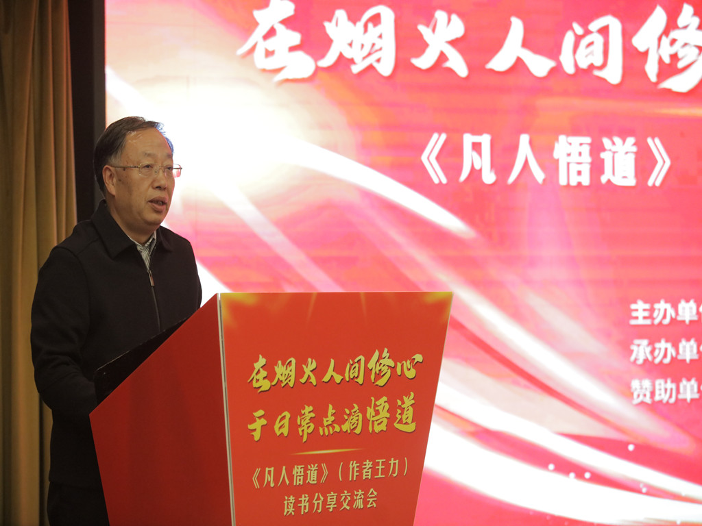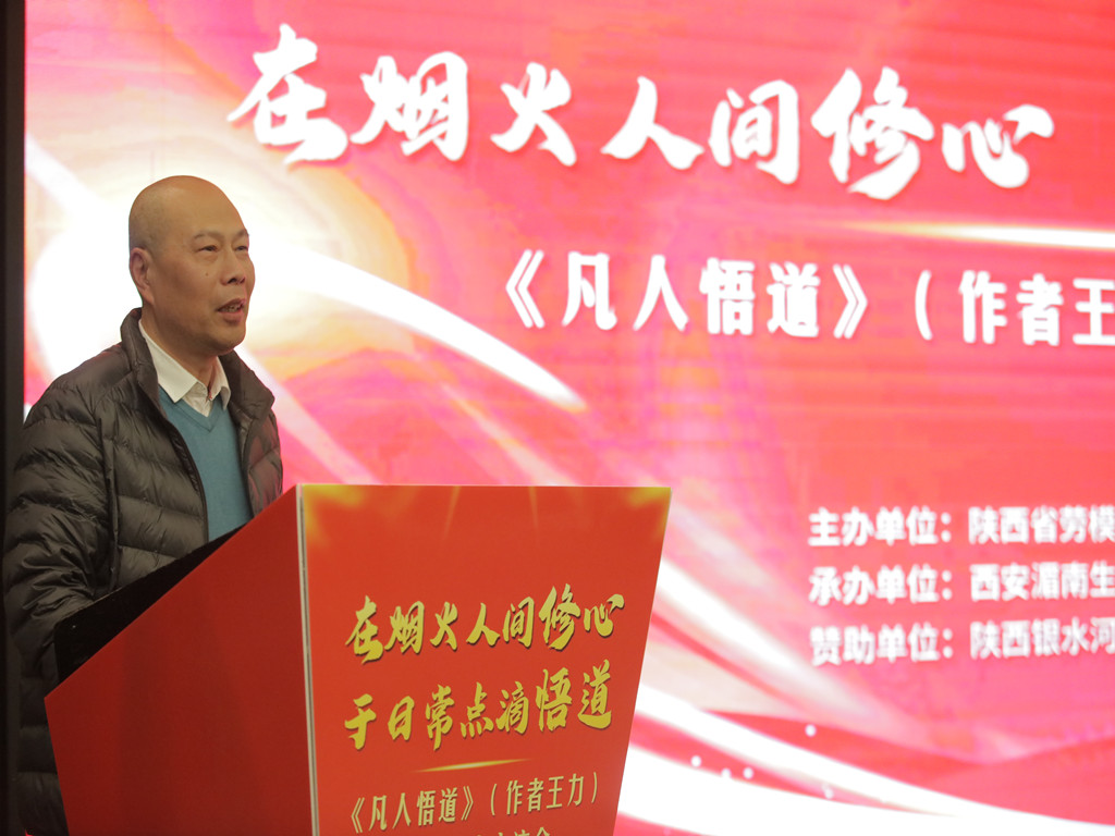 活动伊始,兰新哲首先介绍了陕西省劳模工匠协会的基本情况,他代表陕西省劳模工匠协会重点谈了主办这次读书分享会的背景,这是创新开展陕西省劳模工匠大讲堂品牌活动的有益尝试。他指出,《凡人悟道》作者王力先生,担任过大型国有企业的高管和工会主席,具有传奇的人生阅历,所以这次《凡人悟道》读书分享交流会必定别开生面、与众不同。同时就《凡人悟道》谈了两点感受,他指出《凡人悟道》中的“凡人”既可以是工人,也可以是所有劳动者,还可以是我们的劳模工匠。《凡人悟道》中的“道”应该是普通人熟知的大道理之外的更深层次的道理,那就是“劳动创造一切”“劳动创造未来!”