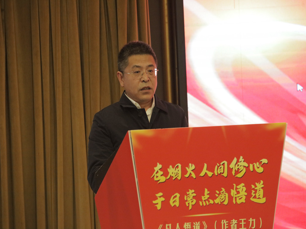 中铁一局总经理张林代表企业致以敬意,他向《凡人悟道》作者王力先生致以诚挚的敬意!他指出,王力先生以中铁一局37年的职业生涯和从业经历,见证了自己与企业的共同荣光!在担任中铁一局沪杭客专党工委书记、项目经理期间,带领参建员工挑战极限、攻坚克难,锻造了中铁一局沪杭高铁“五种精神”!在督导西安站改太华路立交项目时,创造了令人惊叹的“太华速度”!在担任中铁一局工会主席期间,推动援建的商洛市柞水县产业扶贫项目落地见效,被点赞“小木耳,大产业” !中铁一局工会被中共中央、国务院授予“全国脱贫攻坚先进集体”!其个人也成为中铁一局建局以来首位全总工代会代表!通过《凡人悟道》,深入浅出地阐释出道在平凡生活里,道在朴素情感中,道在平常日子里!展现出王力先生对中铁一局一往情深、心心念念,对铁路建设事业初心不改、矢志不渝!他希望,在西安这座历史名城、文化名城,能推出更多像《凡人悟道》这样有思想、有温度、有品质的精品力作,在见书、见人、见事的过程中传播企业精神和职工文化!