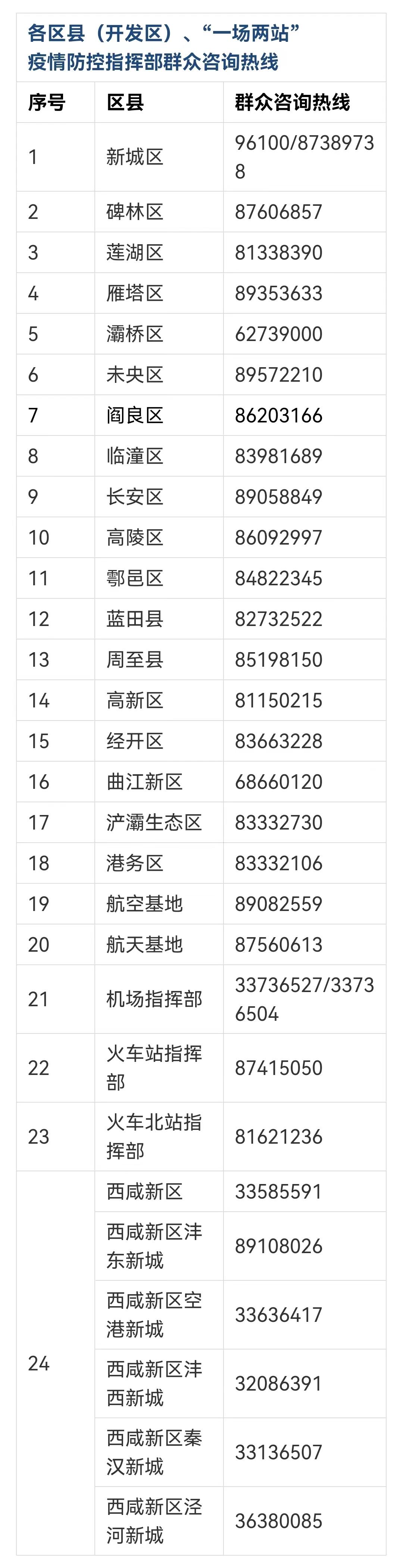 为切实守护人民群众生命安全和身体健康,再次提醒广大市民朋友: 一、关注疫情,主动报告 如发现自己与感染者以上轨迹有时空交集,或收到疫情防控提醒短信,或健康码异常,应尽快主动向社区、单位、宾馆等报备,按照短信提示落实防疫措施,不前往公共场所,尽量不乘坐公共交通工具。如有疑问请拨打029-12345或各区县疫情防控指挥部办公室群众热线(详细信息附后)咨询。 二、减少流动,优化行程 当前国内疫情防控形势依然严峻,全国现有高风险区1518个,中风险区1059个,建议广大市民朋友非必要不出省、减少跨市出行,如确需出行,出行前全面了解目的地疫情风险状态和疫情防控政策,不前往中高风险区和有病例报告的地区,并提前向所在社区(单位)、学校报备,服从目的地疫情防控要求,错峰出行、做好防护。 根据《新型冠状病毒肺炎防控方案(第九版)》,西安市对近7日内有国内高风险区旅居史的来(返)人员,落实“7天集中隔离医学观察”措施,对近7日内有国内中风险区旅居史的来(返)人员,落实“7天居家隔离医学观察”措施,管理期限自离开上述区域算起。 请近7日内有内蒙古自治区全域、西藏自治区全域、宁夏回族自治区全域、新疆维吾尔自治区全域、甘肃省全域;山西省太原市、运城市、晋中市;四川省(绵阳市、遂宁市、成都市龙泉驿区);青海省(海西州、西宁市);贵州省毕节市赫章县;天津市(滨海新区、河东区、河西区);云南省西双版纳傣族自治州;广东省韶关市武江区、浈水区、深圳市罗湖区、福田区、宝安区、龙岗区;上海市嘉定区、黄浦区、长宁区、闵行区、浦东新区等有一定范围社区传播疫情地区旅居史的人员及国内中高风险区所在区(县)人员,务必提前3天在“陕西一码通”的“来(返)陕预填报”模块进行报备,或者通过拨打目的地社区、单位、酒店联系电话等方式报告近期旅居史和自身健康相关信息,并配合落实各项对应疫情防控措施。 大数据行程卡显示有省外旅居史来返人员和省内有疫情地市的来返西安市人员到达西安市后,需主动配合落地查(48小时核酸检测证明、陕西一码通、大数据行程卡)、落地检(即检即走,无需等待检测结果)等措施,严格按要求完成落地核酸检测及入市3日内核酸“3天3检”(含落地检,间隔24小时以上),抵市后前3天不参加聚集性活动,不进入重点机构,尽量不进入室内密闭场所。 西安市在机场、火车站、高铁站、长途客车站、高速收费站等场所均设置了便民核酸采样点,为省外及省内发生疫情的城市来返西安市人员在进入西安市时提供1次免费核酸检测服务。这类人员核酸检测后即采即走,无需等待检测结果。但建议这些旅客朋友在检测结果报告前,不前往公共场所,尽量减少社会面接触。 三、加强防护,配合防控 日常要坚持科学佩戴口罩、做好个人卫生、保持社交距离;接到“流调”电话,要积极配合,切实做到不隐瞒、不谎报,自觉接受流调队员的防控措施引导,避免疫情扩散;不信谣、不传谣,及时关注官方发布信息,共同维护来之不易的防控成果。 附件: “各地疫情防控政策措施”小程序码(见下图):