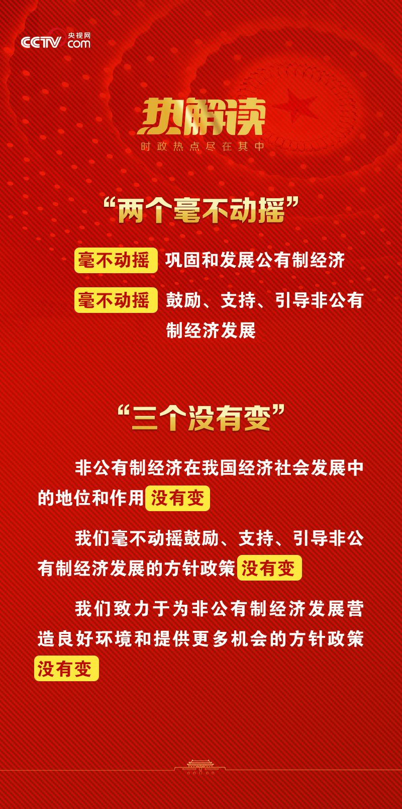 热解读3月6日下午,习近平总书记亲切看望了参加全国政协十四届一次会议的民建、工商联界委员,并参加联组会,听取意见和建议。联组会上,总书记鼓励广大民营企业家“增强信心、轻装上阵、大胆发展,实现民营经济健康发展、高质量发展”。 增强信心、轻装上阵、大胆发展,这十二个字背后,是习近平总书记“始终把民营企业和民营企业家当作自己人”的真切情谊。 回望总书记的两会时间,“民营经济”“民营企业”一直是重要的关键词。 2016年全国两会期间,习近平总书记就曾参加以经济界人士为主的民建、工商联界委员联组会,就坚持我国基本经济制度问题发表讲话,并特别用“两个毫不动摇”和“三个没有变”来提振民营经济信心。