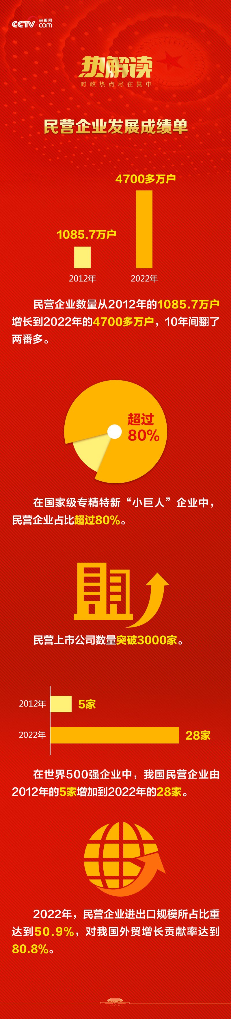 在习近平总书记的关心支持下,《中共中央 国务院关于营造企业家健康成长环境弘扬优秀企业家精神更好发挥企业家作用的意见》《中共中央 国务院关于营造更好发展环境支持民营企业改革发展的意见》《关于支持民营企业加快改革发展与转型升级的实施意见》等一系列政策文件先后出台,为民营企业发展保驾护航。非常时期,国家及时推出助企纾困举措,通过减税降费、融资支持、稳岗扩岗、减免租金等直接有效的政策帮扶,支持民营企业稳定经营、迎难而上。 2023年政府工作报告再次强调,切实落实“两个毫不动摇”,依法保护民营企业产权和企业家权益,鼓励支持民营经济和民营企业发展壮大,支持中小微企业和个体工商户发展,构建亲清政商关系,为各类所有制企业创造公平竞争、竞相发展的环境,用真招实策提振市场预期和信心。
