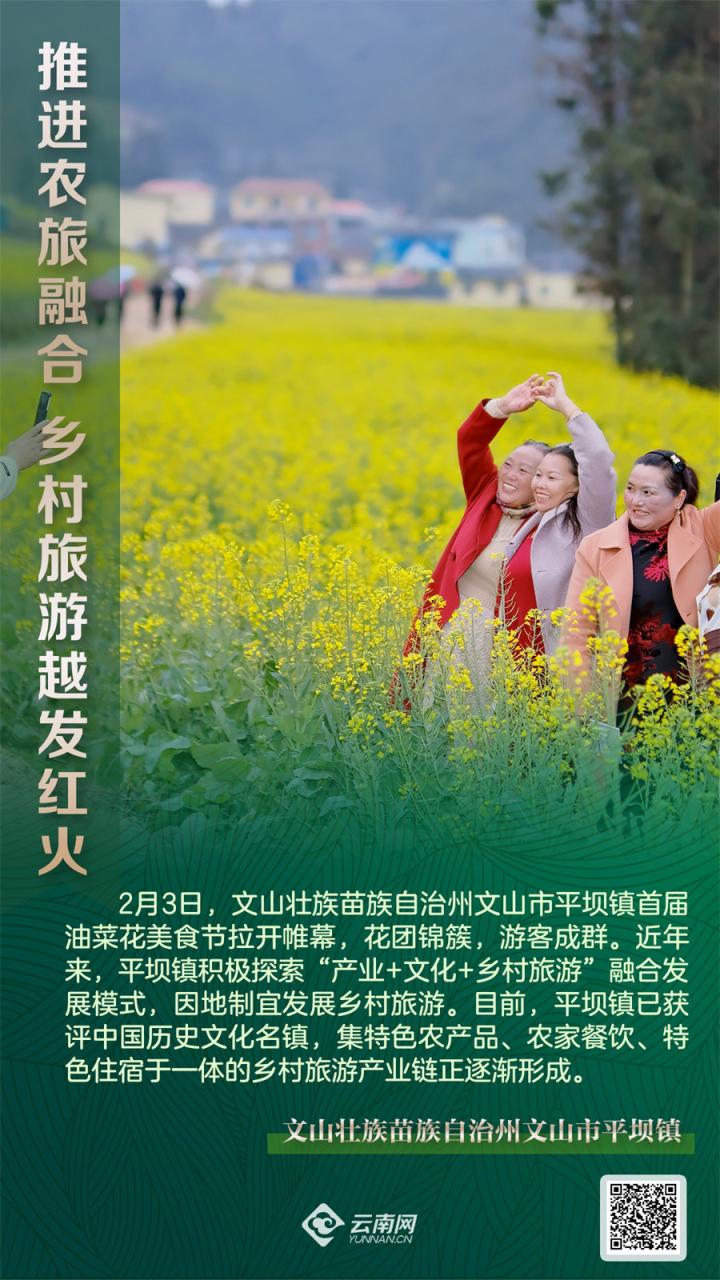 2023年的省政府工作报告中提到 全力促进农村居民和脱贫人口持续增收、 夯实粮食安全根基、推进高原特色农业全链条升级、 扎实稳妥推进乡村建设、加强和改进乡村治理 明确了要持续巩固拓展脱贫攻坚成果 在全面推进乡村“五个振兴”上取得新突破 省委农村工作会议、全省农业农村局长会议进行了进一步的安排部署 为云南走好走稳高质量发展之路开创新局面 农业产业强镇 致富花开日子甜