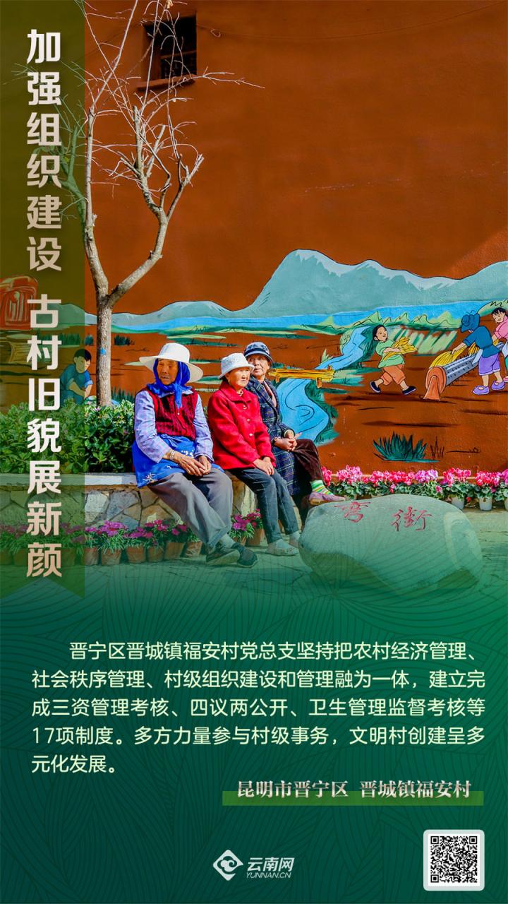 晋宁区晋城镇福安以村庄“微治理” 推动群众矛盾纠纷“零上访” 社会治安“零发案” 开设“乡贤传习所”“福安文明讲堂” 利用“火塘夜话”“咖啡说话屋” 第一时间办理解决 福安村的农村治理成功经验 已入选“全国社会治理创新案例(2022)” 为中国社会治理现代化提供“福安样板” 深化移风易俗 文明新风沁心田