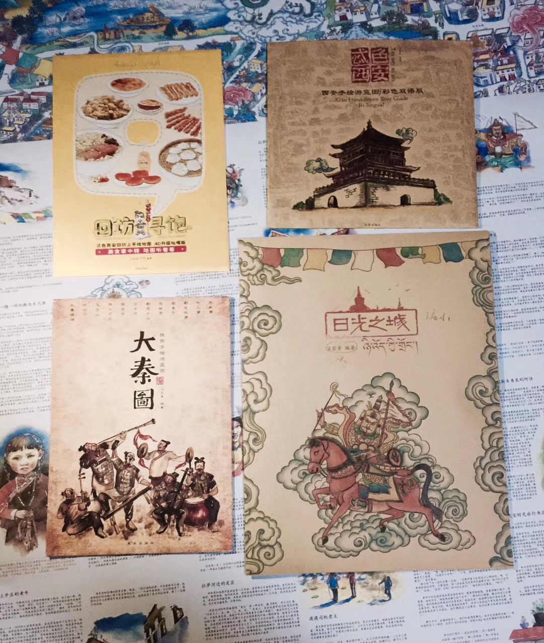 手绘地图的灵感 他说:“我的职业似乎有点混乱,总结一下,应该是——爱写诗、会画画的平面设计师。” 当聊起手绘地图的灵感时,卫东青说,那时候自己的设计公司遇到了瓶颈,工作没有突破性的进展。自己整日愁眉苦脸很不快乐,妻子便提议让他去旅行。在青岛的街边他遇到一位卖地图的老婆婆,这是他第一次看到手绘地图。旅行回来后,他便开始投入到手绘西安的创作中去。卫东青的手绘地图正面像张寻宝图,背面讲述了当地的传说故事、历史文化。