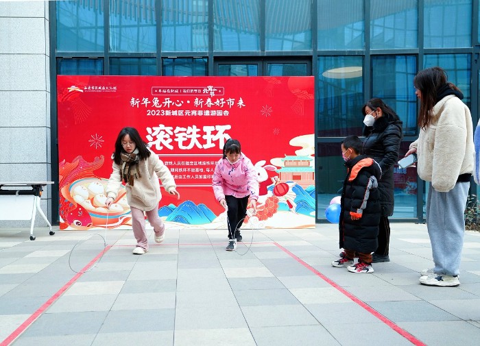 主办方还特别设置了猜灯谜、吹气球、滚铁环、套圈、蒙眼敲锣等不同形式的元宵节游艺活动,通过“通关文牒”盖章最终赢取礼品,市民和游客踊跃参与,赞不绝口。比如,很多居民一起加入蒙眼敲锣队伍,在工作人员的指导下笑声不断。居住在幸福林带附近的董阿姨表示:“这就是家门口的文化盛宴,不仅饱眼福,文化馆还贴心为我们送上了兔子毛巾、元宵等节日礼品,太开心了。” 现场,千余名辖区居民前来“赶集”,随处可见居民的笑脸。其间,小朋友们唱响新年歌曲、大人们套圈游戏玩得不亦乐乎,年味十足,将元宵佳节的氛围烘托得热闹喜人。