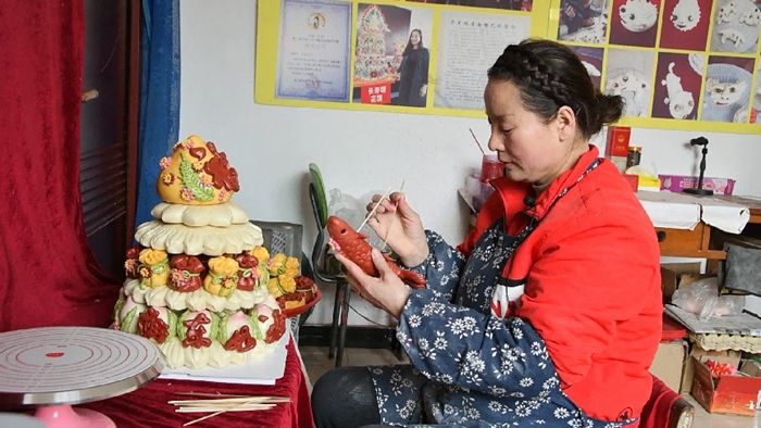 灵动的锦鲤、虎虎生威的老虎、惟妙惟肖的寿桃……在长期制作花馍的过程中,康妙云等一众临渭面花手艺人也逐渐摸索形成了自己的风格,将地域特色融入其中,最终打造出“长寿塬花馍”等临渭特色品牌。为更好地推广和发展这一非遗技艺,临渭区也主动搭台,邀请康妙云走进校园、社区传授花馍制作技巧,拍摄制作技艺和花馍短视频进行传播。“我想让更多人了解和参与到这项富有地方特色和非遗文化底蕴的传统艺术中来。”这是康妙云和临渭区一众花馍制作艺人的共同心声。