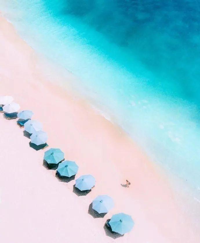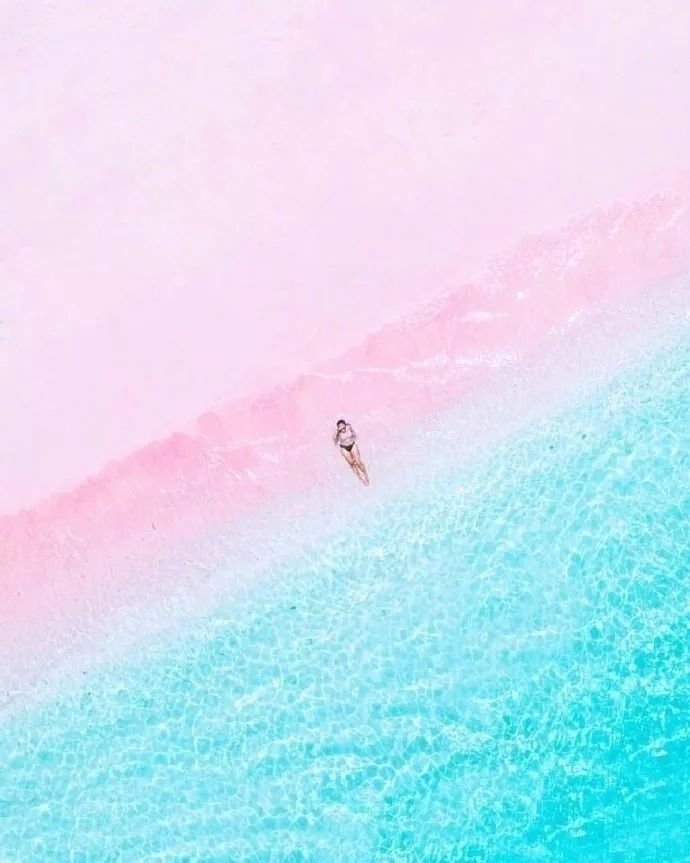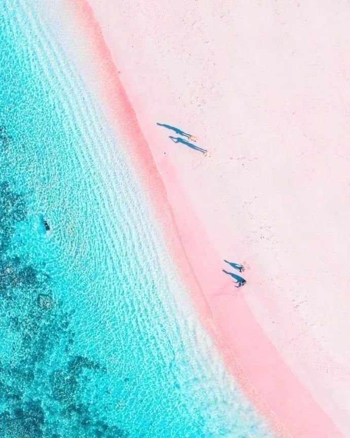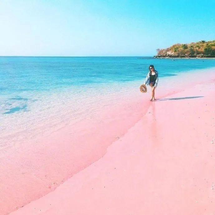 科莫多岛 阳光照射下,海水由远及近、由深蓝到翠绿依次晕染开。 浪花拍打在岸上退散后,露出的是粉色娇艳的沙滩,沙砾细软至极,踩上去让人十分放松。 在少女心爆棚的粉红沙滩上晒太阳、拍大片,让你不敢相信自己的眼睛,梦幻的场景居然出现在了自己的面前。