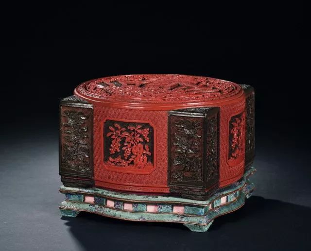 清乾隆 御制剔彩春寿琮式套盒 (一对)