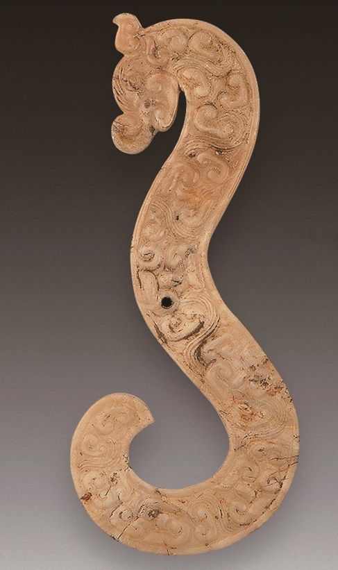战国时期的龙形玉璜 权力意识是族群存在最重要的精神支柱 权力或权威意识是族群以及国家存在最为重要的精神支柱。权力或权威意识不只是体现在实际的生活中的各种不平等,还体现在信物的拥有上。权力或权威的信物,不具实用功能,通称为礼器。 史前考古发现,在距今约7000年至4000年前,已有体现权力或权威的信物存在。这里,特别重要的是彩陶、蛋壳黑陶、玉器。彩陶乃陶坯赋彩后烧制而成。彩陶的出现当为礼器之始。彩陶最早出现在大地湾文化中,距今7000年,彩陶的全面兴起是在距今7000年至5000年的仰韶文化,巅峰在距今5000年至3000年的马家窑文化。蛋壳黑陶产生于距今4600年至4000年的龙山文化中。蛋壳陶杯厚度不过0.2至0.5毫米,黑晶发亮,也是礼器。玉器是礼器之最。距今5000年出现繁荣,突出代表为红山文化。稍晚,南方玉器也出现繁荣,主要代表为凌家滩文化、石家河文化和良渚文化。良渚文化中的玉琮,造型为外方内圆的柱状体,体现出天圆地方的观念。四周刻有兽面纹或神人兽面纹。玉琮既是神权的象征,更是王权的象征。也许它就是最早的玉玺。 图腾意识是民族认同的标志 图腾意识是一种全人类几乎都有的意识。图腾的基本性质是对民族的认同。图腾是民族的标志。中华民族史前的图腾很多,这源于当时的中国大地上,存在着诸多的族群,几乎每一族群都有自己的图腾。诸多的图腾中,花,也许最具亮色。花的造型,以大地湾文化彩陶上的花叶纹最为舒展,而仰韶文化庙底沟类型彩陶器上的玫瑰花瓣纹则最美丽。此种造型,在大汶口文化中也有发现。正是因为爱花,中华民族才将自己的民族定位为“华”,而将自己居住地的一座高山称为华山。 随着民族的不断联合,图腾也出现融合。最后,以龙凤为最主要的图腾。最早的龙造型是辽宁阜新查海村发现的石砌龙,长达19.7米,距今8000年。红山文化三星他拉遗址发现的玉龙最接近后世龙形,距今5000年,现用为华夏银行的标志。龙形文物的出现一直延续到文明时代。