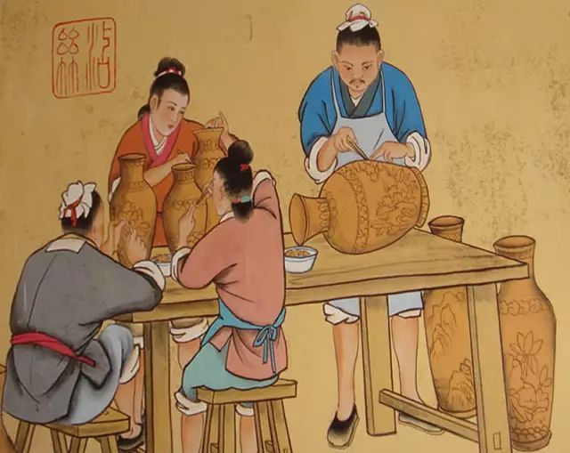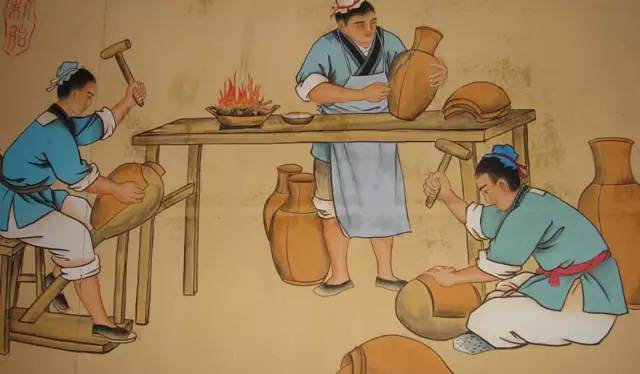 制胎:将紫铜片按照图纸要求剪出各种不同形状,并用铁锤敲打成各种形状的铜胎,然后将其各部位衔接上好焊药,经高温焊接后便成为器皿铜胎造型。