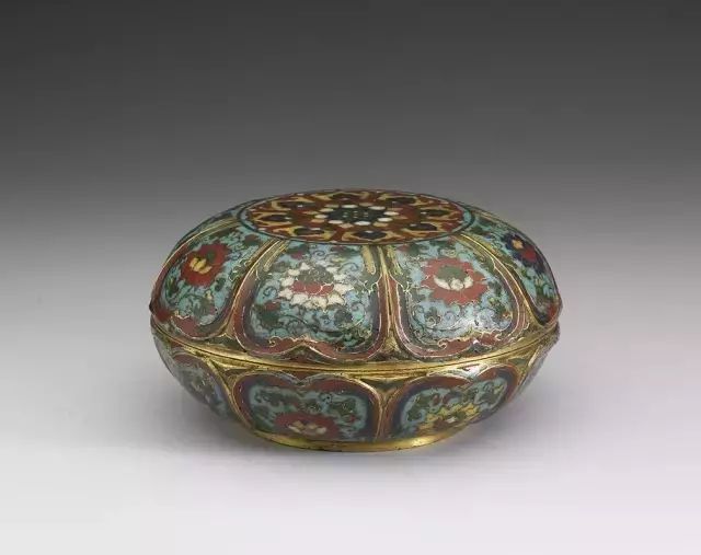 明 景泰掐丝珐琅番莲纹盒 故宫博物院藏 明末清初孙承泽在《天府广记》中记载:“至内造如宣德之铜器、成化之窑器,永乐果园厂之髹器,景泰御前作坊之珐琅,精巧远迈前古,四方好事者,亦于市内重价购之。”
