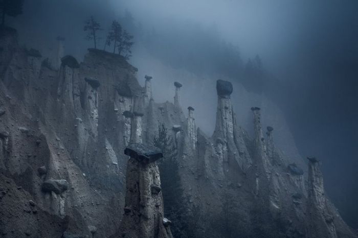 《火星》 摄影师:Marco Grassi 作品描述:这些位于意大利北部的南蒂罗尔地区天然的沙塔,顶部覆盖着巨大的石头,被称为“地球上的金字塔”。它们形成于几个世纪前的风暴和山体滑坡,看上去就像外太空的风景,并随四季不断变化。这种自然现象是由于暴雨和干旱持续不断的交替导致地形的侵蚀所致,随着时间的推移,“金字塔”消失,而新的尖顶也会形成。 自然组大众选择奖