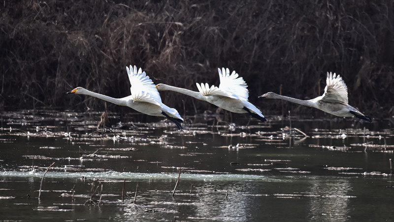 【视觉陕西】10多只天鹅在咸阳市三原县清峪河湿地越冬 来源:咸阳日报 作者: 时间:2021-02-03