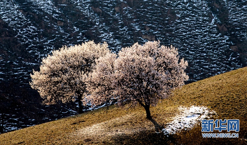【视觉陕西】陕西定边县:春花遇春雪 黄土高原生机盎然 来源:新华网 作者: 时间:2021-04-22
