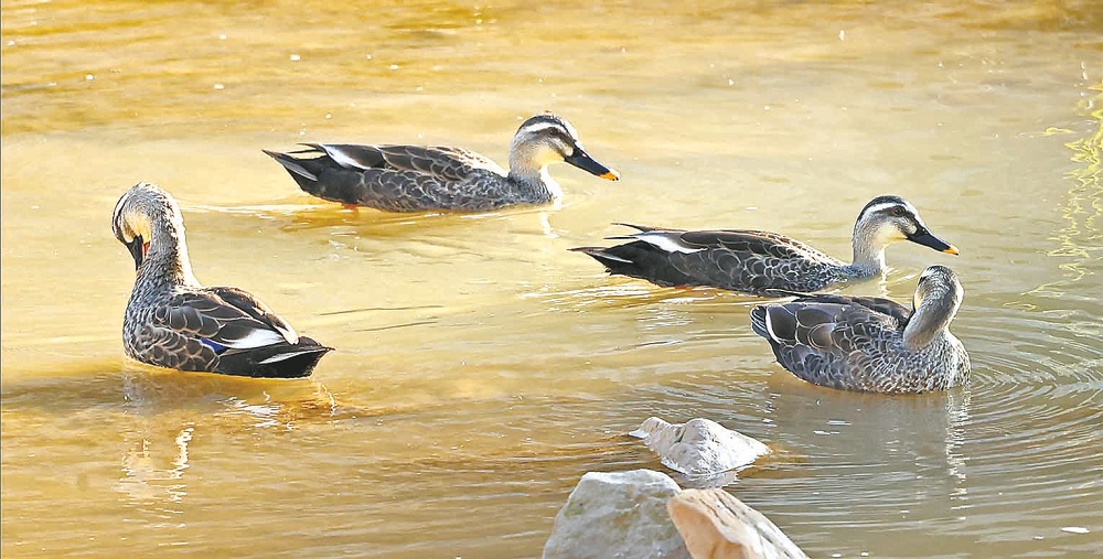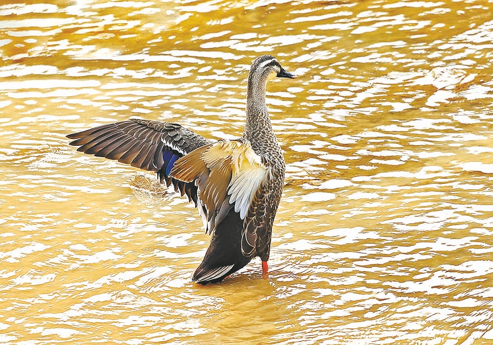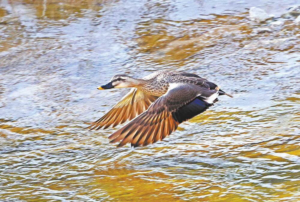在延安市区西北川河道中国延安干部学院附近,生活着一群斑嘴鸭。笔者长期跟踪拍摄,看着它们从两三只逐渐发展到二三十只,种群越来越大。它们时而打闹追逐,时而低头觅食,时而打理羽毛,时而振翅欲飞,总能吸引市民驻足观望。大家都说:“这是我们延安生态环境越来越好的最好证明,树越种越多,水越来越清,自然就吸引了更多的水鸟前来安家落户。” 斑嘴鸭体型大小和绿头鸭相似,体长50—64厘米,体重1千克左右。雌雄羽色相似。上嘴黑色,先端黄色,脚为橙黄色,脸至上颈侧、眼先、眉纹和喉均为淡黄白色,远处看起来呈白色,与深的体色呈明显反差。又称为谷鸭、黄嘴尖鸭、火燎鸭,是一种大型鸭类,也是中国家鸭的祖先之一。 斑嘴鸭喜欢生活在湖泊、水库、江河、水塘、沼泽等地方,非常善于游泳,通常会结成群体活动,但大多时候不会潜水。它们的食谱较杂,主要是水生植物的叶、嫩芽、茎、根和水生藻类、谷物种子,同时也吃鱼虾、昆虫等甲壳或无脊椎动物。曾经,它们的种群极为丰富,但随着人类过度猎取,加之生存环境条件恶化,致使种群数量日趋减少。 随着延安生态环境的变化,斑嘴鸭野生种群在延安有所恢复。夏秋之际,笔者常常看到它们“拖家带口”地在河道上飞翔、畅游、栖息、觅食,看起来日子过得挺悠闲。它们还非常爱干净,常在水中和陆地上梳理羽毛、精心打扮。玩得快活的时候,它们还会发出非常响亮而且清脆的叫声,感觉能够传到很远很远的地方,仿佛带着我们远离城市的喧嚣,来到花舞虫鸣、山风舒畅的大自然之中。