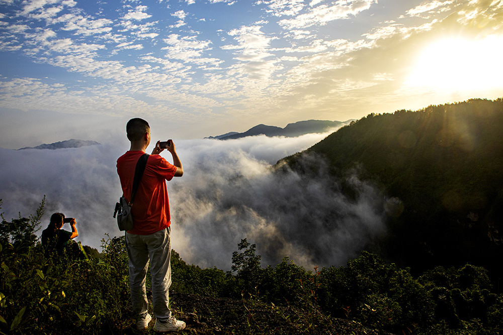 摄影爱好者在山顶拍摄袅袅岚烟。白玉超 摄 编辑:慕瑜 |