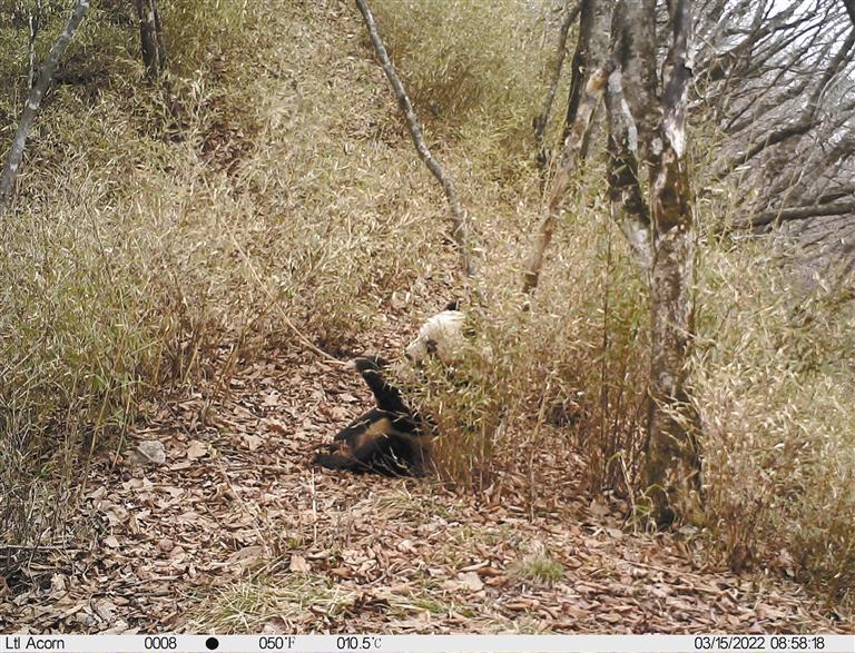 红外相机拍摄到的野生大熊猫照片。陕西省龙草坪林业局提供 陕西日报讯 (记者 田芳昕 通讯员 吴彦峰)陕西观音山国家级自然保护区工作人员近日在整理红外相机数据时,惊喜地发现大熊猫在秦岭大熊猫走廊带活动的照片和视频。除大熊猫外,工作人员还发现大量伴生动物的活动痕迹,红外相机也拍摄到金钱豹、金丝猴、羚牛、斑羚、鬣羚等国家一、二级重点保护动物的活动照片和视频。 红外相机拍摄于2022年3月15日的视频显示,一只健康大熊猫在采食游荡,作短暂停留后离开。拍摄区域秦岭箭竹长势良好,地势平缓,距离秦岭隧道上方已废弃的原108国道仅600米,证明大熊猫已经能够很好地利用走廊带栖息地自由活动。 观音山国家级自然保护区位于佛坪县境内,地处秦岭大熊猫保护区群的中心位置,是秦岭大熊猫兴隆岭种群和天华山种群的连接纽带。从2005年开始,陕西省龙草坪林业局利用108国道秦岭隧道建成通车的有利时机,积极申请国家林草局及世界自然基金会(WWF)项目,加强秦岭隧道大熊猫走廊带的建设与管理,修建野生动物通道,恢复大熊猫栖息地。野生动物栖息环境得以显著改善,大熊猫及其伴生动物的种群数量稳中有升,在走廊带区域的活动范围明显扩大。 与此同时,工作人员在红外相机监测照片中还发现,设立在保护区内东凉公路下的7条野生动物通道中时常出现羚牛的身影:无论白天或黑夜,它们或逍遥独行,或三五成群;有时几只羚牛会在桥洞侧壁上舔盐“打牙祭”;有时还是一大家子在通道内安然休憩……它们大概是秦岭之中最“喜爱”野生动物通道的森林成员了。 2015年以来,龙草坪林业局利用东凉公路保护区段7个原有的桥洞和缓坡,通过清理乱石杂木、铺垫水泥平台,改建出7条专属于野生动物的安全通道。监测数据显示,羚牛、大熊猫、斑羚、野猪等野生动物已经开始利用这些通道,在保护区两个核心区之间来回迁徙,实现了不同区域野生动物间的交流。 编辑:王俞 |