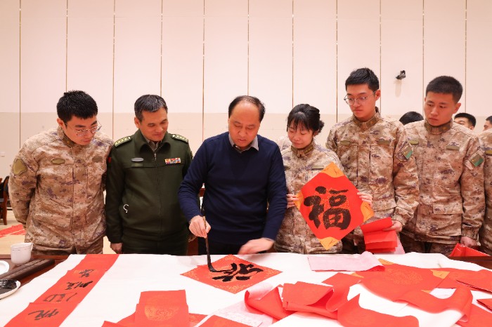 万里长空多锦绣,千秋伟业壮豪情。1月9日上午,陕西省书法家协会2025“万福迎春”系列活动走进驻陕某部,为官兵们送上红红的“福”字和写满祝福的春联。