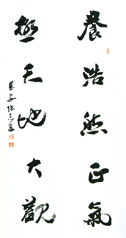 古有云:“入之愈深,其境愈奇。”当今书坛,浙人写行草,柔美而线条轻滑;川人写行草,厚实而结体丑陋。我以为,对传统挖掘的深度直接决定作品的高度,在方与圆、曲与直、浓与淡、缓与急的变幻中,追随古人的黑白交响,描画自己的艺术心路。书法不是技术的产物,它是以线条、结构、章法为载体,倾注了无比丰富的人文情怀……诸如书写者的品格、审美追求、人生理想、世界观等等。所以,书法是哲学的、音乐的、也是文化的。