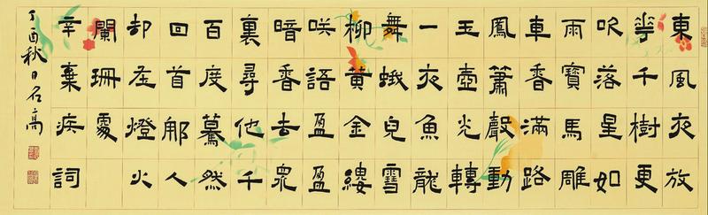 杜甫《院中晚晴怀西郊茅舍》句 国人书写汉字,各有见解。若持一端,这口水仗就会没完没了!此处所论书法,绝非大众眼里一手好字。汉字之始重于记事、载道,易识之外欲求美观,摸索实践,法则渐立。讲究既多始有书法。而昔时不同今朝,白话文兴盛,颖毫记录已成过往。涉猎不足,其中道理也就知之寥寥,这无关荣辱。最可笑者莫过于无知还要摆出一副博学多能的样子,动辄搬出“颜柳”,唯唐楷至上。末了,再抛出笔谏的柳公权,对法书之中的欹侧、大小、枯湿现象予以批驳。柳诚悬说:心正则笔正,笔正则字正。尔等写字歪斜、做作,其灵魂必扭曲,遑论书道!事实上,他们奉为圭臬的唐楷,也绝非大小如一、正敧无变。状如算子乃书法之大忌,却被某些人当作标尺。昔日馆阁体,字字珠玑,一张如此,数张亦如此,甚至同一内容叠加面光而视,竟能纤毫不爽,似今日的复印机。此等字,功力虽盛,却是死的,缺乏生命的律动,何谈艺术? 就艺术本体而言,书法以其多变而彰显造化之无穷魅力。字字妥贴若帅哥、靓妹,天下皆以此等面目复制不绝,久视则索然乏味。人处于世,无法孤立存在,其言行必受环境影响。书圣有《兰亭序》,反复20个”之“字无一雷同,非为炫技,而是洞察上下、左右,悉知权变,这是全局观,避让、穿插,刚柔、收放,正敧、藏露,増之一分则盈,减之一分则亏,浑然而无憾,是谓大美。由此观之,字无定型,法求多变,此乃技法层面上的核心问题。而临帖习古,亦非复制一个书圣或草圣出来,重在毕肖之后对其中技法有一个充分的认识,进而活学贯通。 简而言之,丰富性可以从如下几个方面来入手: 字法有大小、正敧、纵横、收放、疏密、错落,拟之可毕肖,用之有全局观方妙。 笔法讲方圆、藏露、连断、中侧、粗细、刚柔,锤炼日久,即可提升线条质量。 墨分五色,或润含春雨,或干裂秋风。涨墨浑厚,清墨得逸气;枯不燥、润不弱乃佳;若遇繁琐线条,无损识读,偶施黏笔也可增强表现力,多一些趣味。 节奏乃生命之律动。快慢有致,剧而恣肆、和能静穆,对度的把握常因审美、性情而有异。 如上技巧,似建筑之砖、土、材料,当以人为本,筑起理想之大厦并非简单垒积,有赖建筑师的审美、构想和情趣作支撑,是个性化的艺术实践。 所谓的“平”即是缺乏变化。 当然,破平之法种种,未必面面俱到。譬如小篆,有其固有规范,即便带着镣铐舞蹈,也有其自主审美,正因如此,才可千人不同面目。 余之隶书,欲求高古、拙朴,巧拙相生外想多一些书卷气。以此为主导,取法、增损都是很个性化的事情。变化的手段虽多,一旦确立了审美方向朝前走,方式、方法就有很明显的选择偏好。康有为在《广艺舟双楫》中说:“书法之妙,全在运笔。该举其要,尽于方圆。”固然,方圆乃书法技法层面极重要的元素,又非笔法可尽述,结字、空间于此也多有讲究。李斯《峄山碑》用笔取圆,圆则通,过之却生流俗气。既求清劲内敛,起止若以方笔调和,便有亏古穆、含蓄,故在空间分割时多些直角,也就是我们常说的外圆内方。求古穆,线条之提按就要少些起伏;得文雅,施笔当多些平和;既然向往书卷气,就该刚柔并举、行笔不可剧烈和沉实无度;而要有正大气象,结字、线条就不宜做作。美是多样化的,一味的丰富而无视审美诉求,也是不可取的。