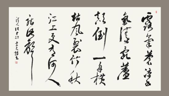 俊秀,是一种刚柔相济、娟秀和谐的美的观念,是书法家审美的现实化展现。这种观念的主体精神来自人的生性以及对是非曲直认识的综合,书法上表现为刚强与柔弱、力劲与软缓、平直与曲折之点画结体的矛盾处理,是一种昂扬向上的内在精神的外在显现,是筋骨与血肉、力度与神韵的协调,归根结底是一种理性的辩证思维。真实与正直的力量表现是这种俊秀之美的根源。李元博始终追求理性的正直,崇尚王羲之古典型艺术类型的不激不励、不偏不倚的通会式的中和。他具有自觉的通变意识和通变能力,这使他能够在诸先贤之间自由行走,随着精神表现的需要而不断调整书法技术元素,显现出通达与中和的多元性。他的四尺单条大字作品以及众多的行书手卷是这方面的代表,无论点画还是结体,都体现了传统与现代元素的合和,刚与柔、劲与缓的协调,表现出滿而不溢,富贵不骄,威武不屈的艺术美、伦理善、客观真和现代人性的独立精神。 简约,是一种知而后行的处世风格,也是书法艺术美的一种外在表现。它包括对文化传统的继承与扬弃,对现代生活纷繁复杂的办事程序与高频律快捷的理性略约,是一种最简“分子式”。繁与简、杂与精、连与断、显与隐的取舍,既有先天生人性的因素,更有人生历练得来的处事经验,是人的精神高标的书法外形抽象,也是一种富有科学精神的符号书法。元博先生敬畏传统又坚信科学,坚持真理又多路径追求真理,保持谦和又追求清淡空灵的个性自由,表现在书法上,追求简约、隐匿、平淡是他的基本风格。这一点,在他的小草、行草书中体现的尤为显明。观李元博草书,其点画沉着精到与行体结构删繁就简,能使人感到一种举重若轻的淡定和若有若无的空灵。这种传承于怀素小草和于右任标准草书的秩序规范,对现代纷繁缭乱的社会生活作了去现象化的本质抽象。