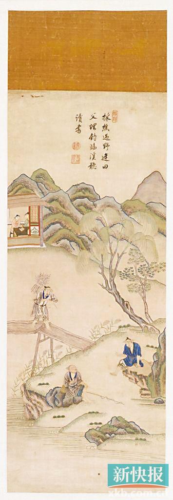 ■汉代弋射收获画像砖 在古代绘画中,反映劳动场面的题材,多集中在农事,这跟古代作为以农耕为主的国家特征分不开,历代统治者都十分重视农耕、桑蚕、纺织乃至渔事等。 其中,“耕织图”用绘画配合诗的形式,反映农桑劳作过程,被称为“中国最早完整记录男耕女织的画卷”。宋代已形成了由单一化走向系统化的比较完整的耕织图体系,达到了通过图像推广农业技术的顶峰。 “耕织图”最早可追溯到战国 有关“耕织图”的历史源远流长,最早可以追溯到战国时期出现单一采桑图像的青铜器上。而劳动场景题材,在后来汉代的画像石画像砖里则较为常见,四川画像砖是一个代表,绝大部分刻画现实生活,除了有表现墓主生前社会地位的车马出行、经师讲学、宴舞等场景外,还有若干反映封建庄园的农业生活画面,其中值得一说的有《弋射收获图》,该图画面分成上下两部分:上部弋射图,右为莲池,池内浮着莲叶,水中有鱼鸭遨游,空中有大雁飞行。下部为收获图,画面描绘六农夫面朝右方,三人弯腰收割,最左边一人挑担前行,右边两人相互顾盼用力挥舞农具。 同类型的作品,北宋《舜子耕田砖雕》也是一经典,砖长方形,砖面内凹凿成壸门状,正上刻有“舜子”2字。舜子耕田为二十四孝故事之一,砖雕画面上小鸟在天空中飞翔,两头大象与三头小象正在耕地,舜子在后面挥鞭播种。 宫廷《耕织图》明代已传日本 “耕织”作为绘画题材起源于宋代时期,是我国古代为劝课农桑、男耕女织而详实地记录耕作与蚕织的系列图谱。由于其“图绘以尽其状,诗文 以尽其情”,形象生动、细腻传神地描绘了劳动者耕作与蚕织的场景和详细的生产过程,图与诗的结合为农民提供了仿效操作的范例。从而起到了普及农业生产知识、推广耕作技术、促进社会生产力发展的巨大作用,而其本身也成为极其珍贵的艺术瑰宝。 北宋是我国历史上耕织图的重要发展时期,出现了系统描绘农耕和蚕织生产全过程的《耕织图》。据南宋李心传所撰《建炎以来系年要录》记载 ,宋高宗曾说:“朕见令禁中养蚕,庶使知稼穑艰难,祖宗时,于延春阁两壁画农家养蚕织绢甚详。”南宋王应麟所著《困学纪闻》中也称:北宋“仁宗宝元(1038-1040年)初,农家耕织于延春阁”。学者王潮生研究称,日前所知,北宋宫廷延春阁中出现的以农家耕织为内容的系列壁画,就是我国最早的宫廷《耕织图》,可惜此图早已不存。 故宫博物院官网撰稿人袁理撰文介绍,《耕织图》作为农桑生产最早的成套图像资料,渊源可至南宋,绘者为楼璹。楼璹在宋高宗时期任於潜(今浙江省临安市)县令时,深感农夫、蚕妇之辛苦,即作耕、织二图诗来描绘农桑生产的各个环节。可惜,原作早已不存。楼璹之孙楼洪、楼深等以石刻之传于后世,南宋有汪纲木刻复制本。但宋以后关于本书的记载已不多见,较著名的有南宋刘松年编绘的《耕织图》,元代程棨的《耕织图》45幅。明初编辑的《永乐大典》曾收《耕织图》,也已失传。明代有仿刻宋刻之摹本,虽失传,但日本延宝四年(1676年)京都狩野永纳曾据此版翻刻,今均以狩野永纳本《耕织图》作楼璹本《耕织图》之代表。 另据王潮生研究现实,现在日本东京国立博物馆也藏有《耕织图》二卷,为日本人“伊泽八郎写之。” 这说明早在15世纪末(明中期),中国古代宫廷《耕织图》就已经传到日本国。 《御制耕织图》以江南农村生产为题材 “耕织图”在不同历史朝代有不同版本,宋代主要包括楼璹版本、翰林画院版本、宫廷画师刘松年版本、梁楷版本;元代有程棨版本、杨叔谦版本;明代有邝播版本、宋宗鲁翻刻版本、仇英版本二清代以御制“耕织图”为主,康熙、雍正、乾隆、嘉庆、光绪不同朝代,均有御制“耕织图”问世,而绘制人包括焦秉贞、冷枚、陈枚、何太青、曾逢吉、郝子雅、吴嘉尤等。历代“耕织图”中“蚕织图”部分,绘制图幅数,以24幅为多 ,有的16幅,也有单幅的,如仇英绘制的“宫蚕图”是一幅长卷。从南宋楼璹版本到清代焦秉贞版本,“蚕织图”的绘制幅数、绘制内容都有增减,有的有题诗,也有的没题诗,图幅前后顺序也有所不同,绘画风格更是体现了不同的时代风貌。 清康熙焦秉贞绘画《御制耕织图》又名《佩文斋耕织图》,不分卷,以江南农村生产为题材,系统地描绘了粮食生产从浸种到入仓,蚕桑生产从 浴蚕到剪帛的具体操作过程,每图配有康熙皇帝御题七言诗一首,以表述其对农夫织女寒苦生活的感念。 此外,还有《胤禛耕织图册·收刈页》描绘麦田中农夫装扮的胤禛(雍亲王)正带领众人收割。此图用笔精到,设色典雅,人物形象生动传神,将劳动者辛勤耕作的场景描绘得十分生动。 “捣练”或很早便成为固定图像模式 与“耕织图”类似,“捣练”题材同样为古人创作乐此不彼,目前美国波士顿美术博物馆所藏的《捣练图》是一件12世纪初的摹本,其祖本的作者传为8世纪中期的唐代画家张萱。大约在12世纪13世纪初,宋朝金章宗在现藏于波士顿的画上写下题签“天水摹张萱捣练图”。这件《捣练图》描绘了12个人物,按照人物的动作,大概可分为四段。第一段,四位宫廷女性用木质捣杵和石砧锤打素练。第二段,两位女性在缝衣服。第三段,一位侍女在照看用来熨烫的一盆炭火。第四段,四位女性在熨烫捣好的素练,一个女童在素练下嬉戏。 所谓“捣练”,又称“捣衣”,是