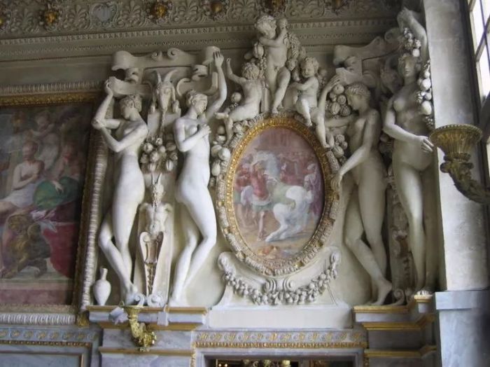 枫丹白露宫内的雕像 运回法国的133件石膏模型当中,包括《拉奥孔》、《观景楼的阿波罗》、梵蒂冈著名的《阿里阿德涅》和《尼达斯的斯纳斯》还有群雕《尼罗河》。绕不开的美第奇除了这位开明君王的大手法,意大利观念在法国的传播在很大程度上要归功于凯瑟琳·德·美第奇。
