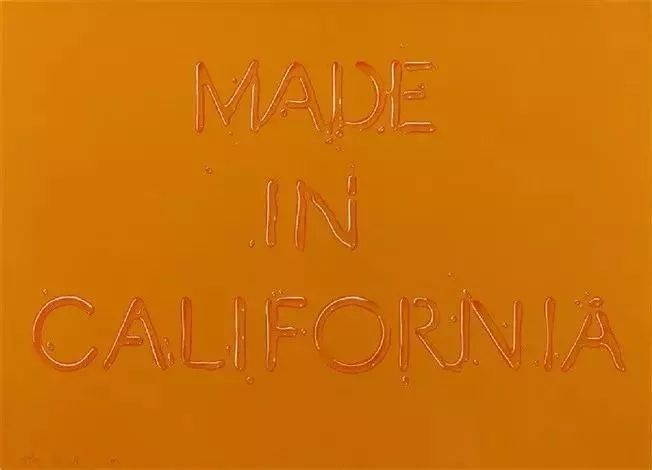 Made in California,1971 到了上世纪90年代,埃德·拉斯查重新运用起文字,而此时山脉成为了他的“新宠”。他常常将小诗或词组,描绘在以山脉为背景的图画之上。虽然山脉在这一时期的作品中出现频率很高,但拉斯查却解释道:“背景没有任何的特指,它们的存在只是作品作为一种支持的力量”。