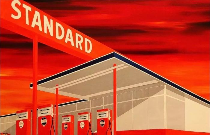 Filthy McNasty's,1976 埃德·拉斯查的创作记录了半个世纪以来美国生活中不断变化的标志。他对好莱坞标志、程式化加油站景观毫无表情的表现,将流行文化的意象提炼成一种电影和排印代码的语言,这些代码既深奥又易于理解。毫无疑问,他的图像来源于密切观察的美国本土现实,他优雅简洁的艺术讲述了有关世界的外貌、感觉和功能,以及我们在其中脆弱和短暂的位置等更为复杂和广泛的问题。