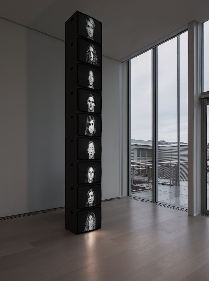Twins (Tokyo, New York, Paris, Santiago, Vienna, Belgian,London, Milan, Santander, Beijing) 2005-ongoing Monitors, Media players, cables,synchroniser, loud-speakers, sound, digital video file black and white. Durationsvariable (looped) © Carsten Höller Courtesythe artist Exhibition View