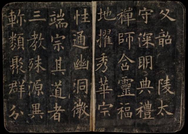 ▲《化度寺邕禅师舍利塔铭》(局部),唐李百药撰,欧阳询正书,刻于唐贞观五年(唐刻原石拓本)大英博物馆藏 儿子欧阳通(公元625-公元691)唐代大臣、书法家,工楷书,书得父法而险峻过之,父子齐名,号“大小欧阳”。传世作品有《道因法师碑》等。