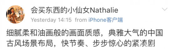 高贵妃手中所握扇子与清代红色缂丝乌木雕花柄团扇对比 此剧不仅服饰精心设计,场景设计也是依照高准则。以还原为基础,赋予每个人不同身份的道具,来体现或夸张人物本身的性格喜好,并穿插些许乾隆年间的审美。 从整体构图,到角色的群戏画面,都有注意整体效果,看起来竟然有了电影质感。展示非遗文化,对时代陈设的考究与再现。《延禧攻略》里的养心殿作为皇帝居所,是皇权的象征,通过殿内陈设可以窥探到人物所留下最为醒目和直观的痕迹。所以在养心殿的置景上如何能还原出最具帝王生活气息的场景显得尤为重要。在剧中,正殿陈设以皇家的黄色为主,铺五爪青龙地毯,画饰多用梅、兰、松、竹、菊,西暖阁陈表大量御笔书法以昭示来兹,体现了皇家威严和乾隆勤政爱民的执政理念。众所周知满清马背,得天下注重骑射,据《啸亭杂录》记载,乾隆“发二十矢,中者十九,侍从诸臣无不悦服”,因此剧组用大量书籍环抱一椅、一弓、一剑,体现了乾隆能文善武这一细节。