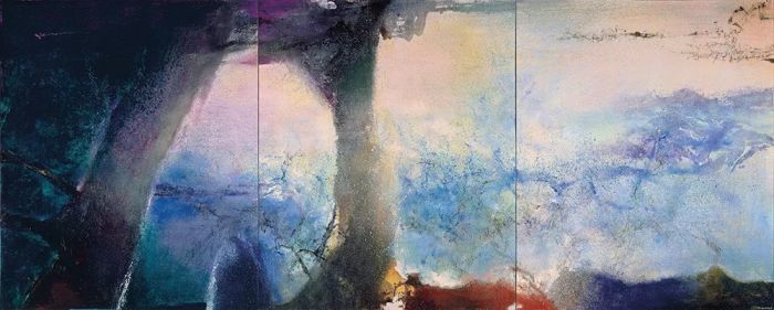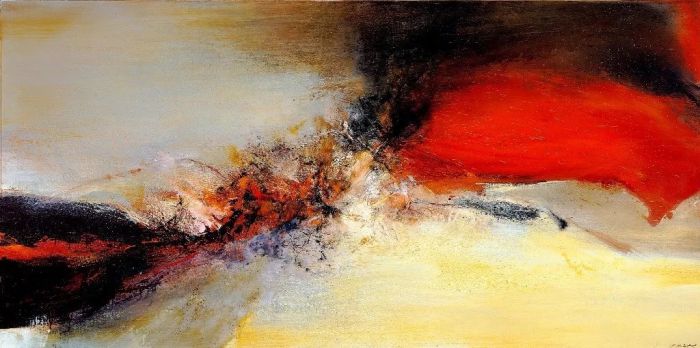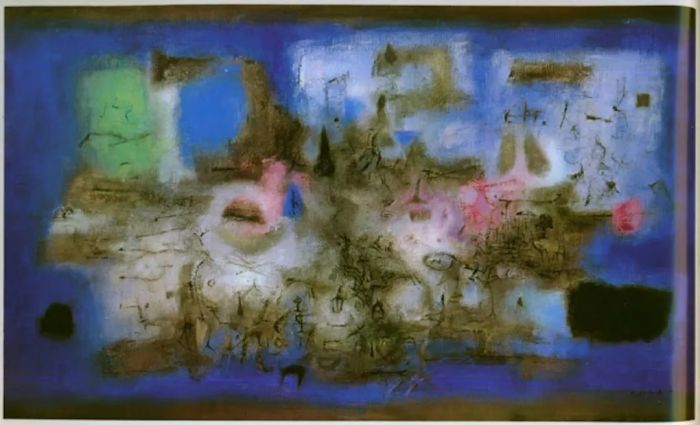 赵无极晚年的作品 顽强面对艺术,仅仅是出于一种需要 玄妙的空间。骤变的色彩,五花八门的形态,在虚无之境争奇斗艳。那宁静的白色,安详的蓝色,忧伤沉闷的紫色和橙色,这些色块的驰突冲撞,宛如我胸中的焦虑和不安。我并不畏惧老之将至,更不怕死,即使死到临头,也毫无所谓。我只需画笔和颜色还能为我效劳,但愿当我创作最后一幅图画时,能给我留下宽裕的时间,而且我还要画得比先前一幅更大胆更自由。 我希望这种顽强的精神教导,也成为教学的一部分。因为这与学习绘画是同样重要的。 第一堂课就有一位学生向我提出要求:能否向我们表演一下如何画吗?我回答说:“我不会表演,我只知道画用法语来讲,就是 Barboille(乱涂)。在巴黎我也是向我的朋友们这样解释的,不用害怕随心所欲。 我并不想炫耀我是如何成为画家的,只是叙述我是怎样经历过来的。经常促使我再次回到静悄悄的画室,站在未曾画过的画布面前,拿起画笔和颜色,仅仅是出于一种需要。